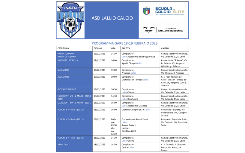 Gli Allievi U16 non giocheranno alle ore 10:00 ma alle ore 10:30.