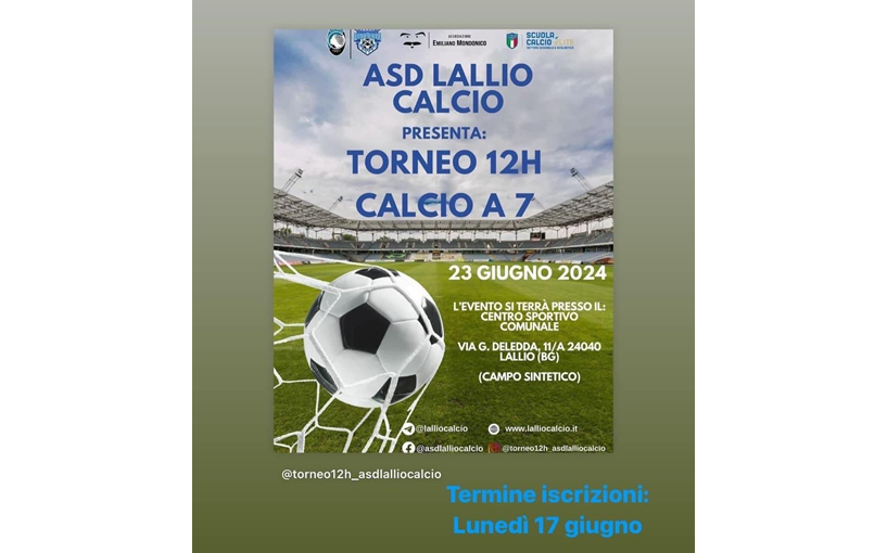 Termine iscrizioni: lunedì 17 giugno Torneo 12 ore a 7 a Lallio