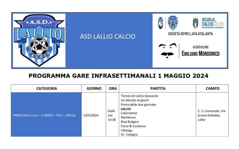 Programma gare infrasettimanali 1 maggio 2024