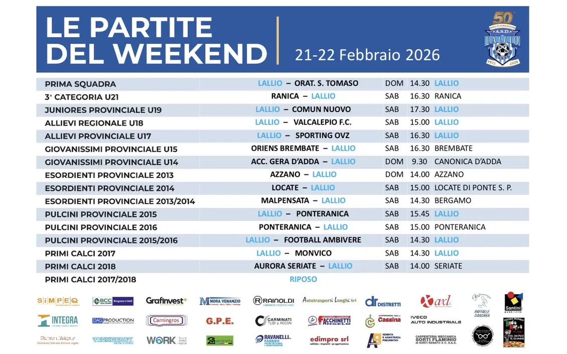 Programma gare 21-22 febbraio 2026